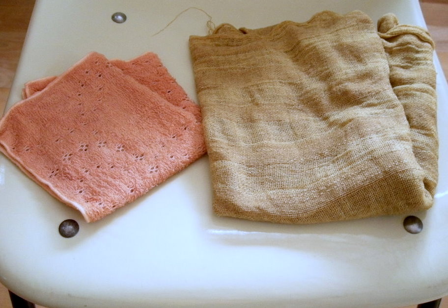 *植物・・・お母様:よもぎ。娘さん:びわの葉 いずれもアルミ媒染