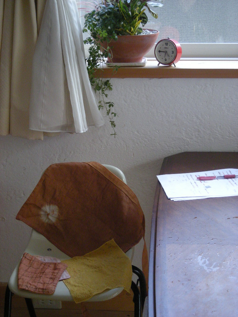*次に素材。おかあさんはカフェエプロン。娘さんは、ブックカバーと木綿のハンカチ。