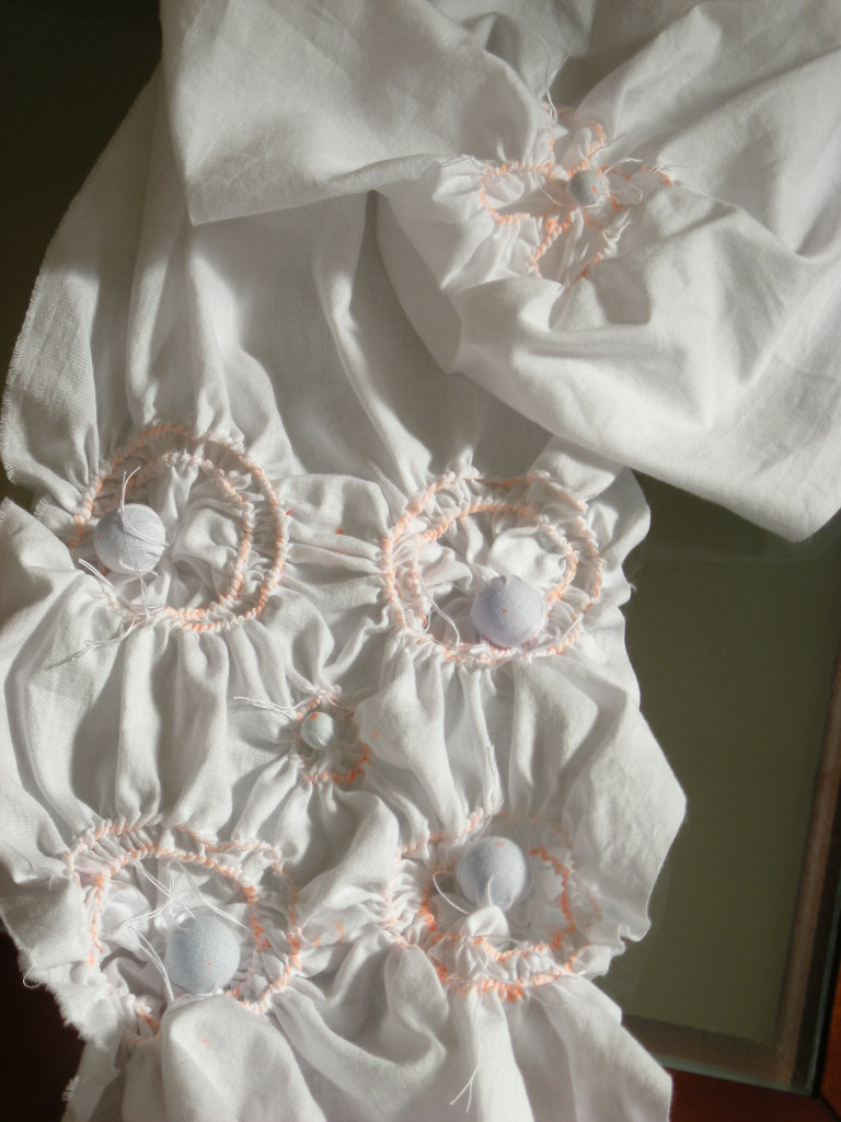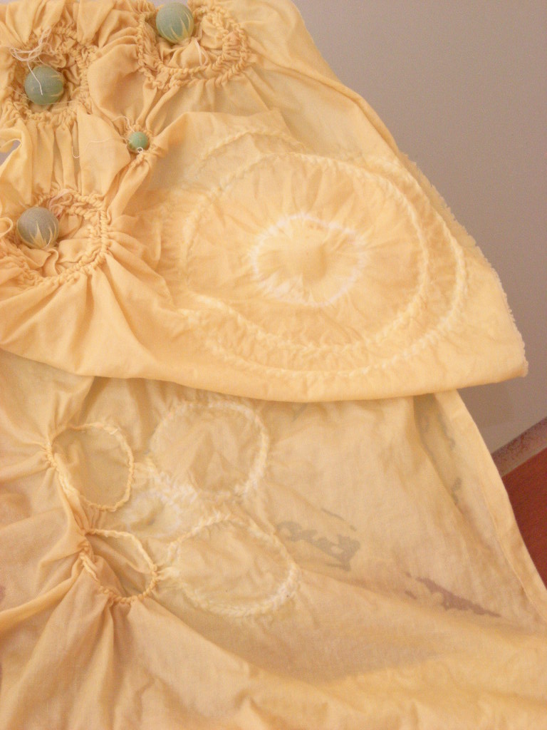 中央はビー玉を入れて裾を絞っています。