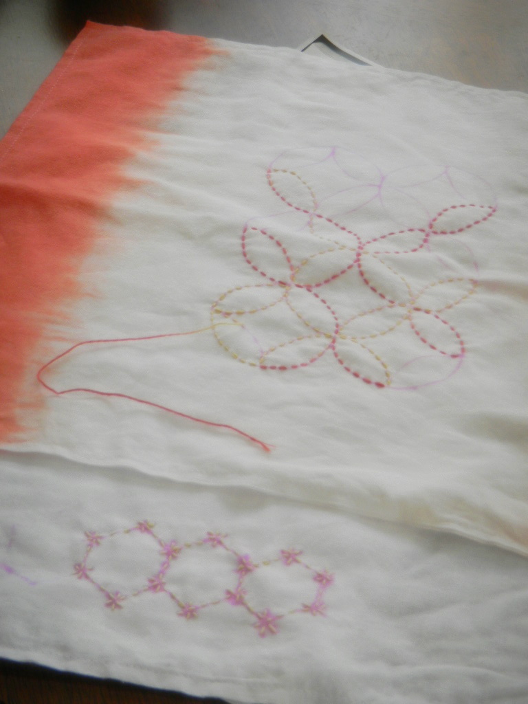 今日は、刺し子糸を染めて、布巾にチクチク、ヌイヌイ。