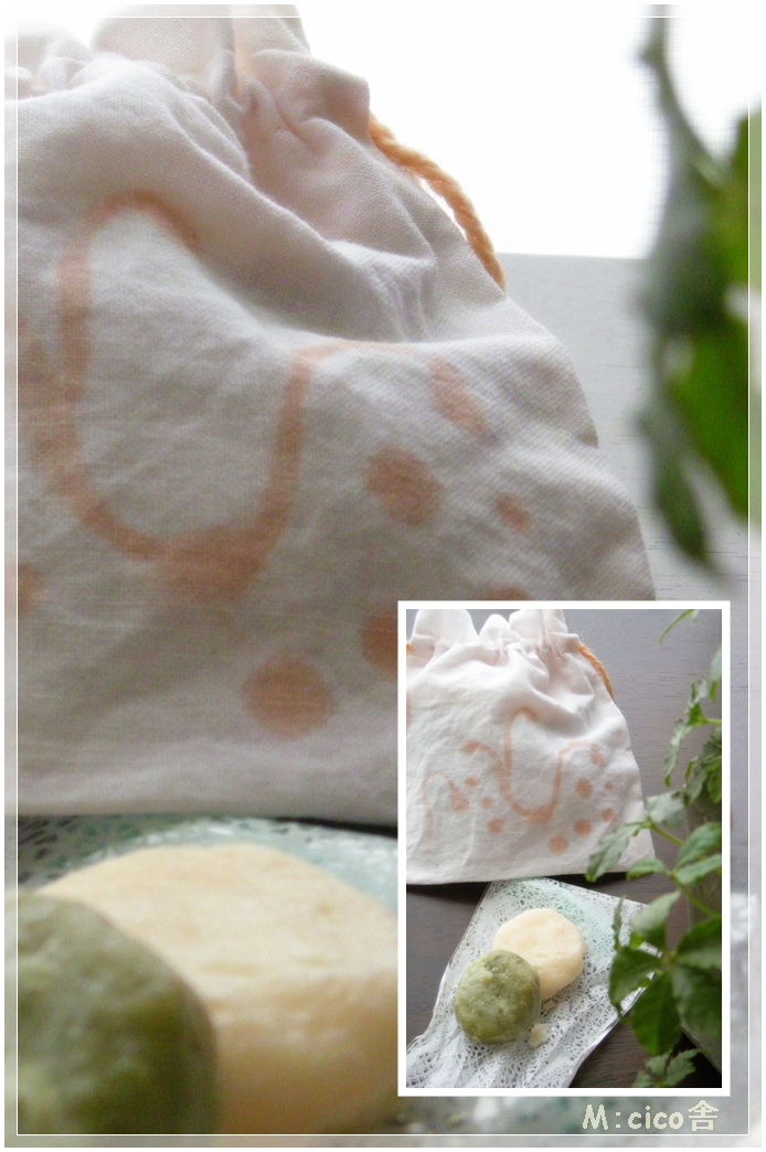 石鹸を入れてお持ちかえり出来るように、ミニポーチも染めあげます。