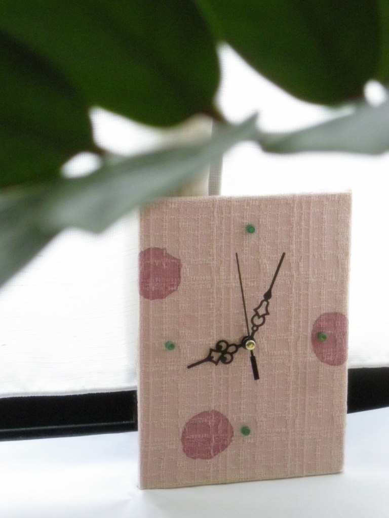 コットンの布を染めて壁掛け時計を作ります。