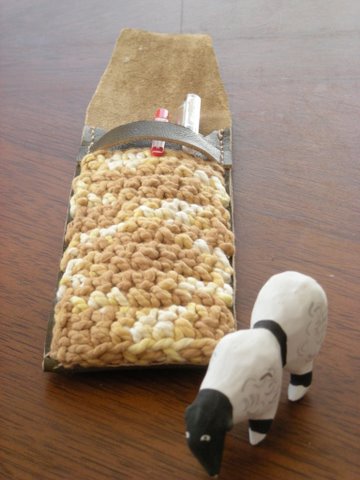 来月の「手作り小物教室」のサンプルができました。 革と糸のペンケースです。(HPにはまだUPしてないです。。。) 来月は、糸を染めちゃいます。杢糸でもいいですし、単色でも結構ですよ。 染めた糸をかぎ針で細編みして、革に縫い付けて完成 シャープペンシルやボールペンが3本くらい入ります。 ちょっとかばんの中に入れるのにちょうどよい大きさだと思います。 サンプルは、梅の葉と枝で染めた杢糸を使ってます。 ちょっと太目のコットン糸です。 ざくざくと編めちゃいます。 オリーブグリーンの革とあわせてみました。 いつになく早い作業です。えっへん ご予約お待ちしています