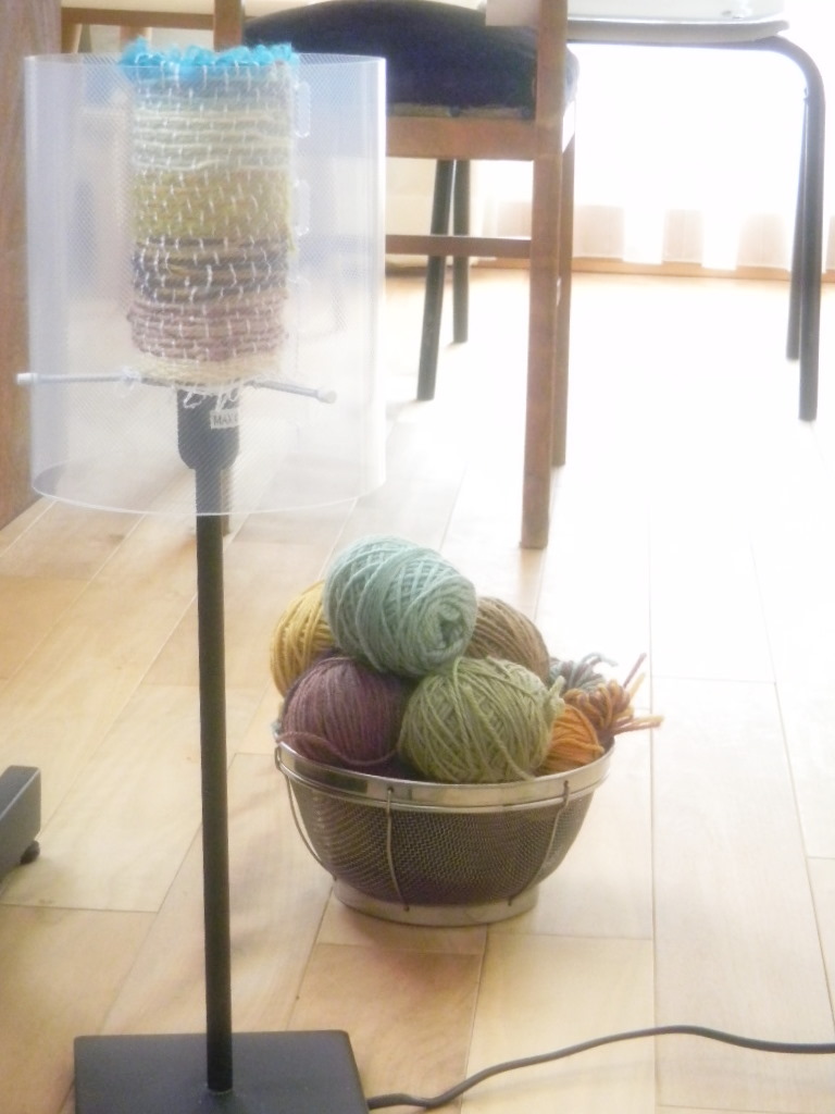 染め糸で織り布のランプシェード」を作りますよ。