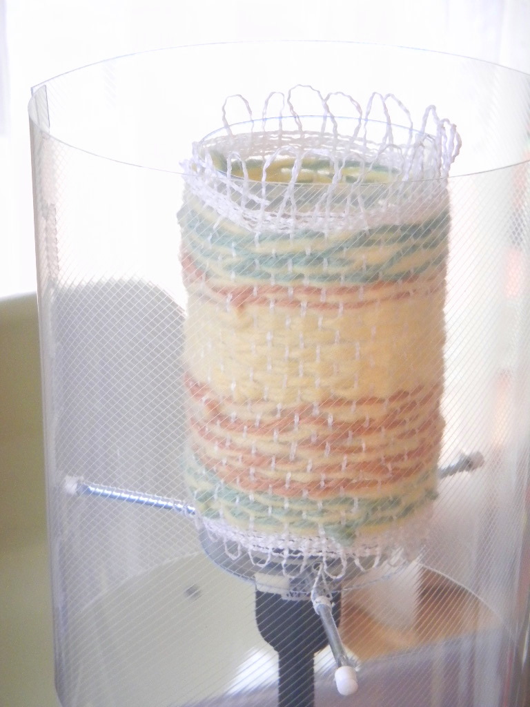 中心のタマゴ色糸がKさんの染め上げた糸です。