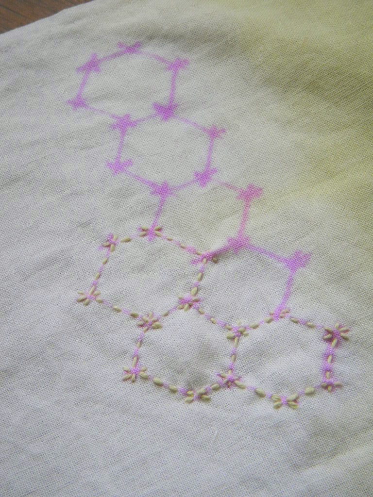 刺し子用のモチーフは*七宝(茜/ウコン) *亀甲(よもぎ) *十字つなぎ(ログウッド)。