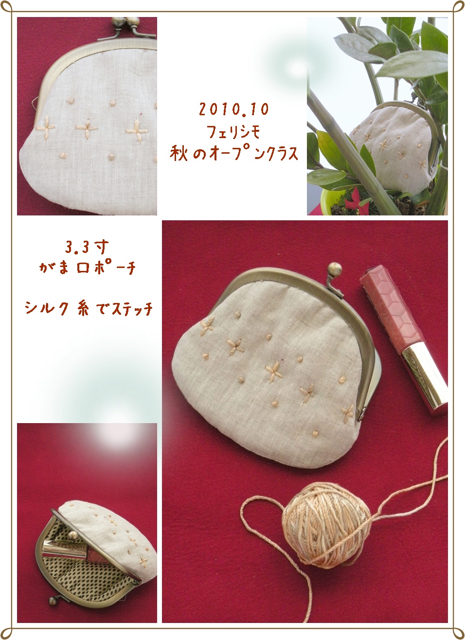 秋のオープンクラス 10月サンプルはがま口小ぶりなポーチ
