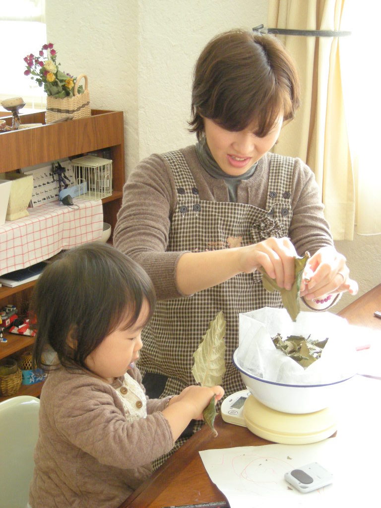 びわの葉は少し硬いんです。お子様の力ではちょっと難しい箇所も。。。