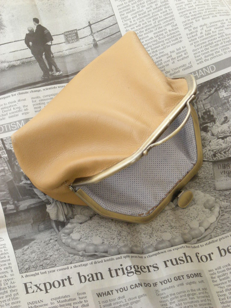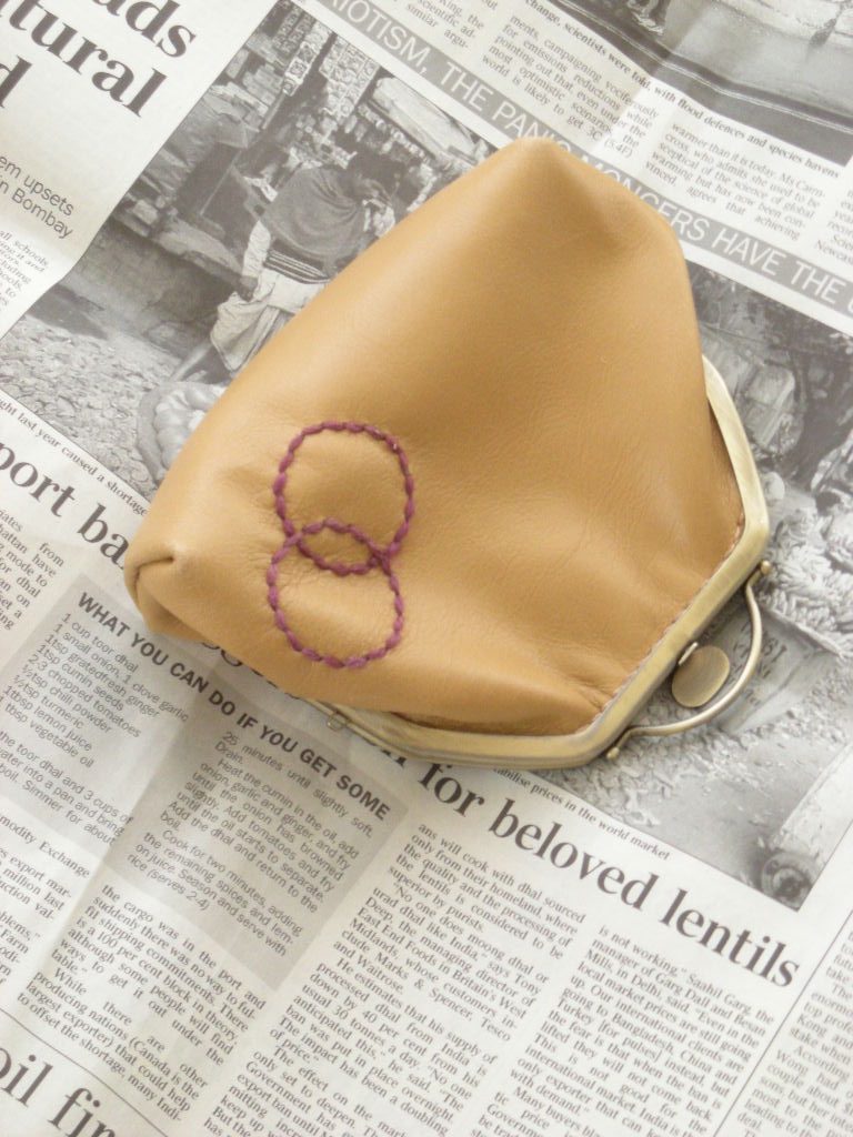 4寸がま口。ステッチの糸に草木染めの毛糸を使います。