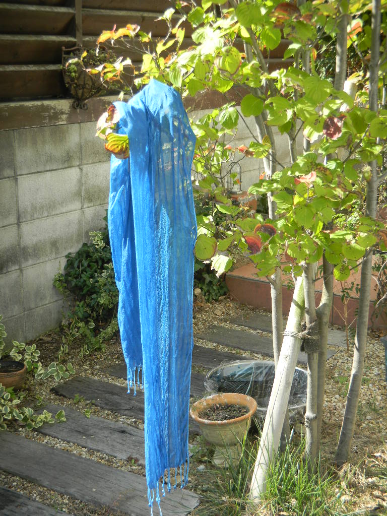 さて、この藍染めの毛糸を使って次回は茜と重ね染めをします。