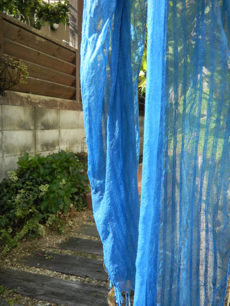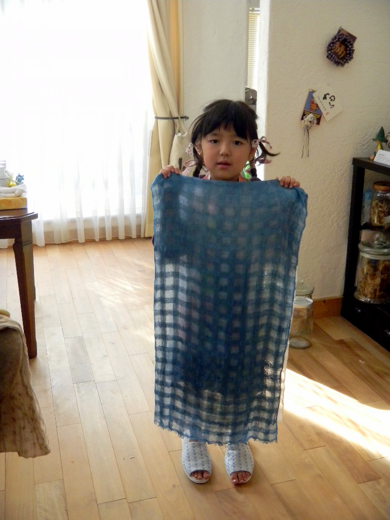 今日はコットンのストライプストールを少し薄めの藍で染めました。