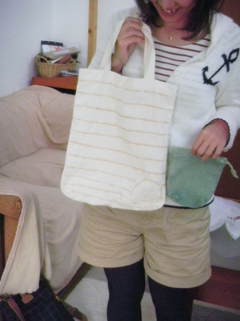 DSCN0726.JPG大きなバッグはもともと無地なのですが、豆乳で縞縞模様を描きましたよ~ん。