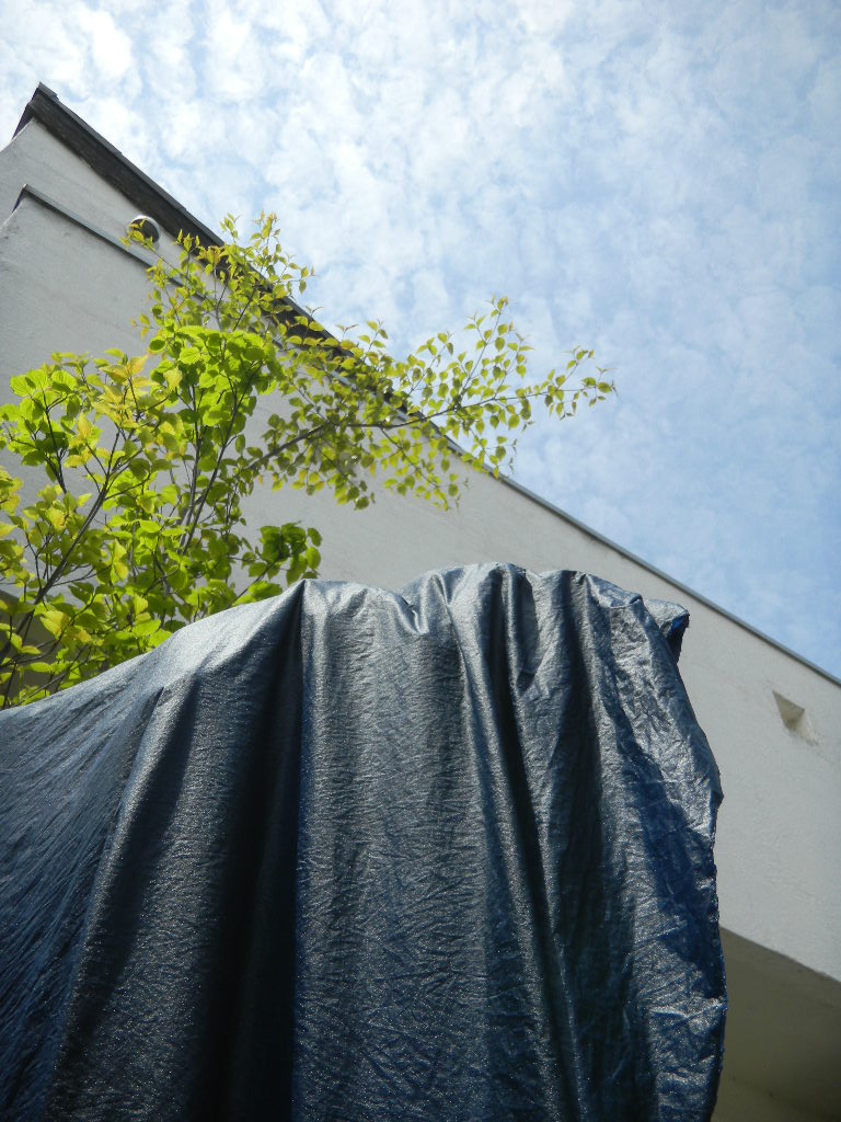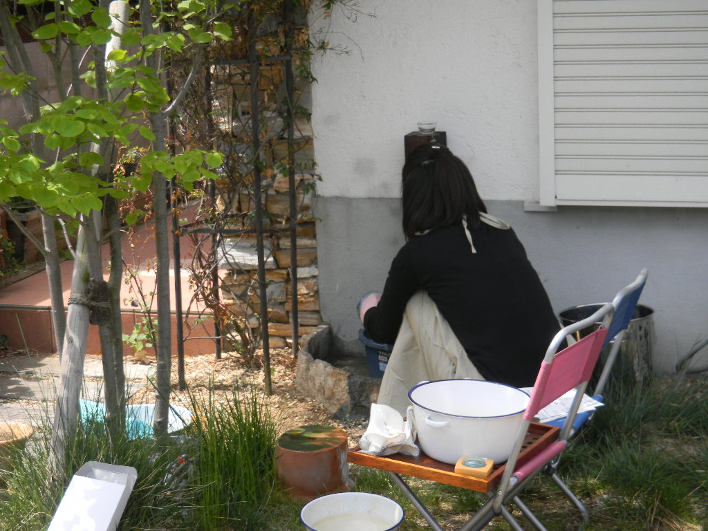 M:cico舎の小さな庭ですが、新緑の中で楽しく作業中。