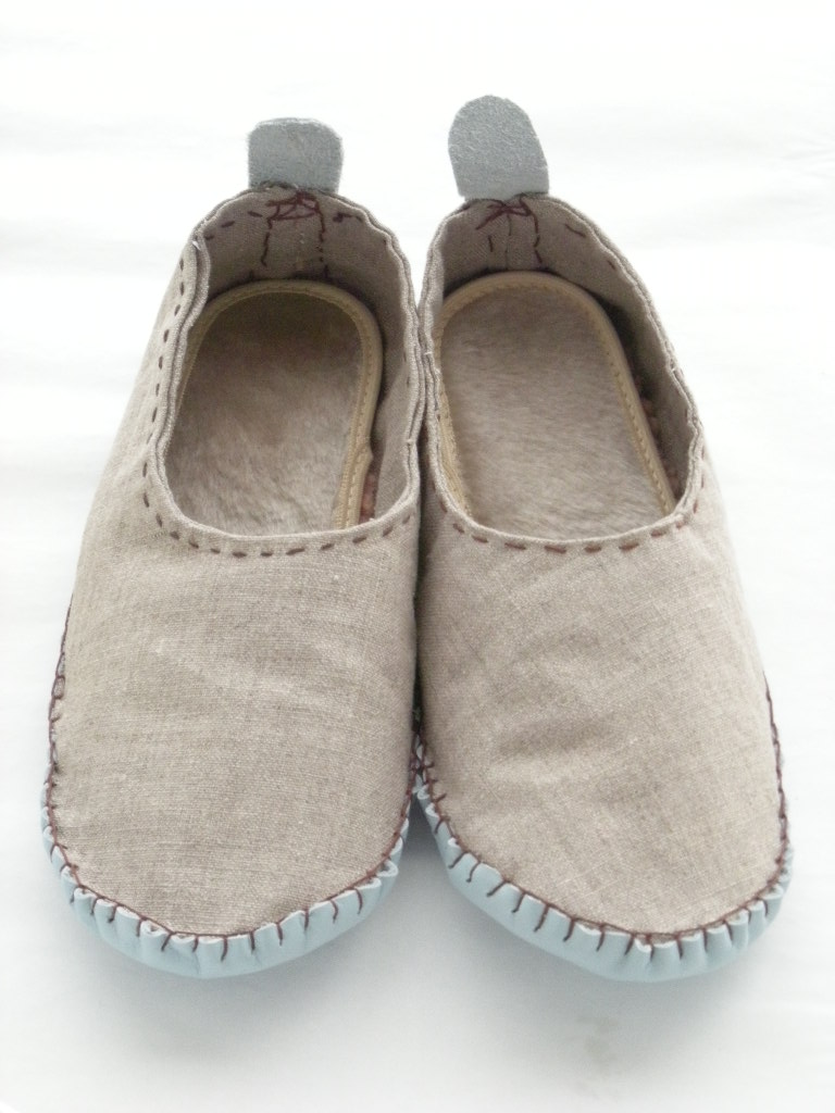 リネンと革のルームシューズ」をご用意しました。