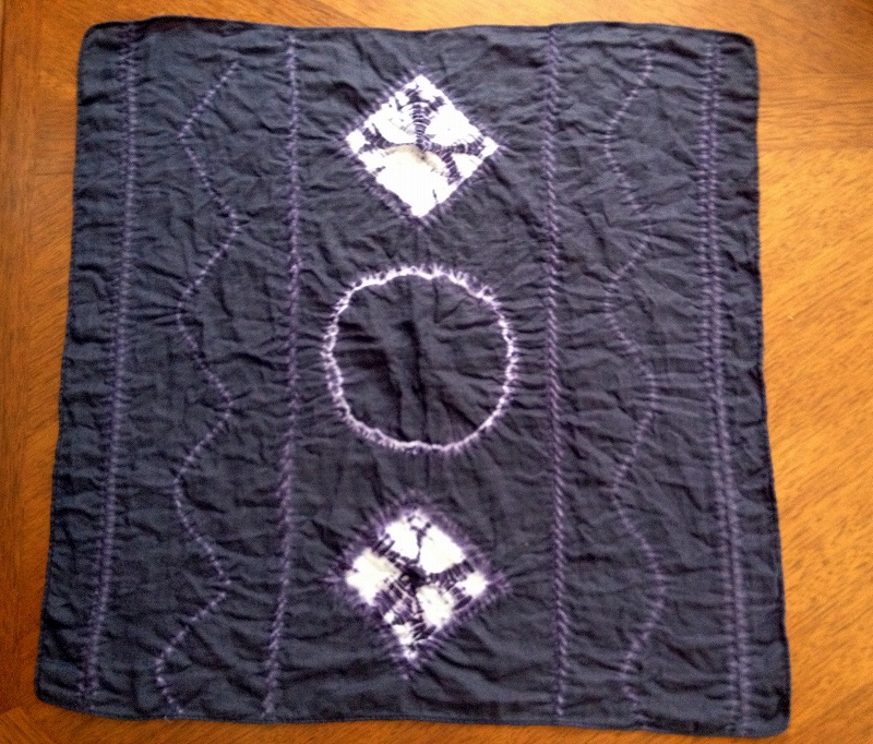 レッスンの内容は、染めに用いる模様付け(豆乳染めや型染め、板絞り(畳み絞り))のスキル。