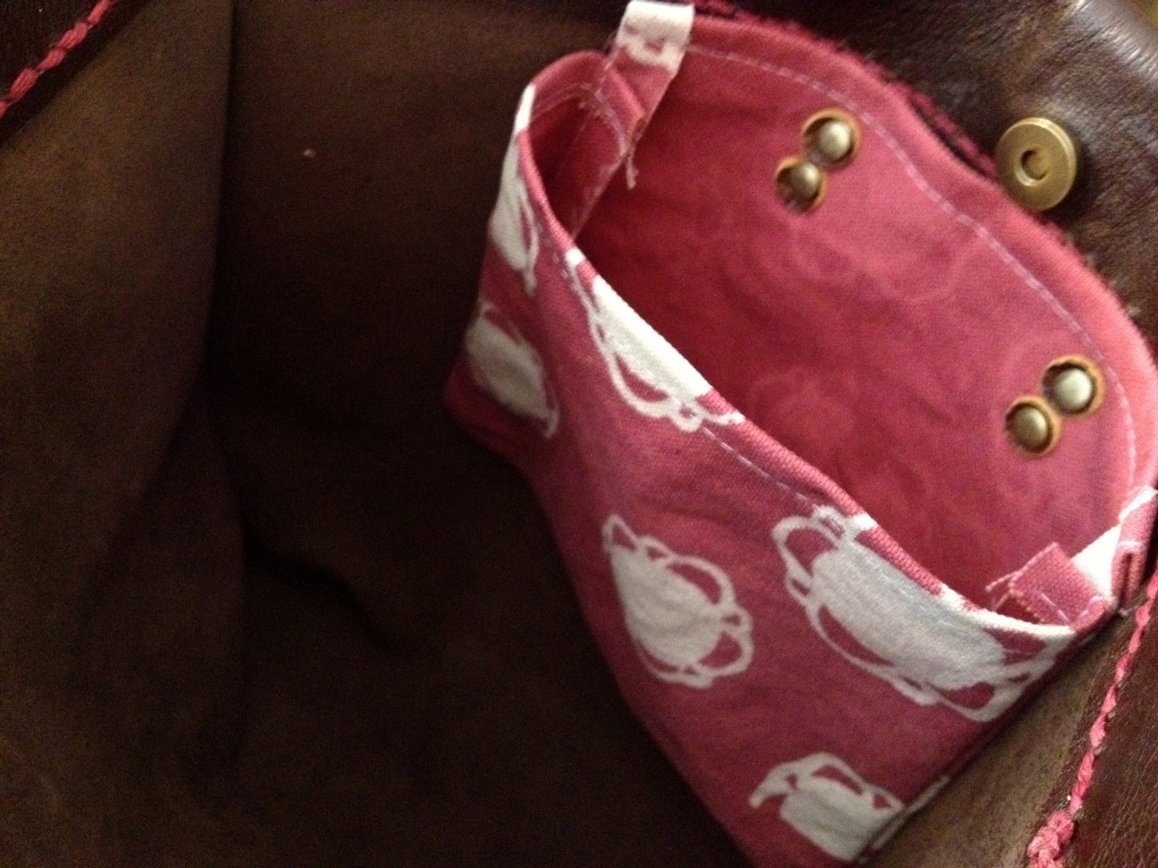 内ポケットは紅花の黄水を使って銅媒染で染色。