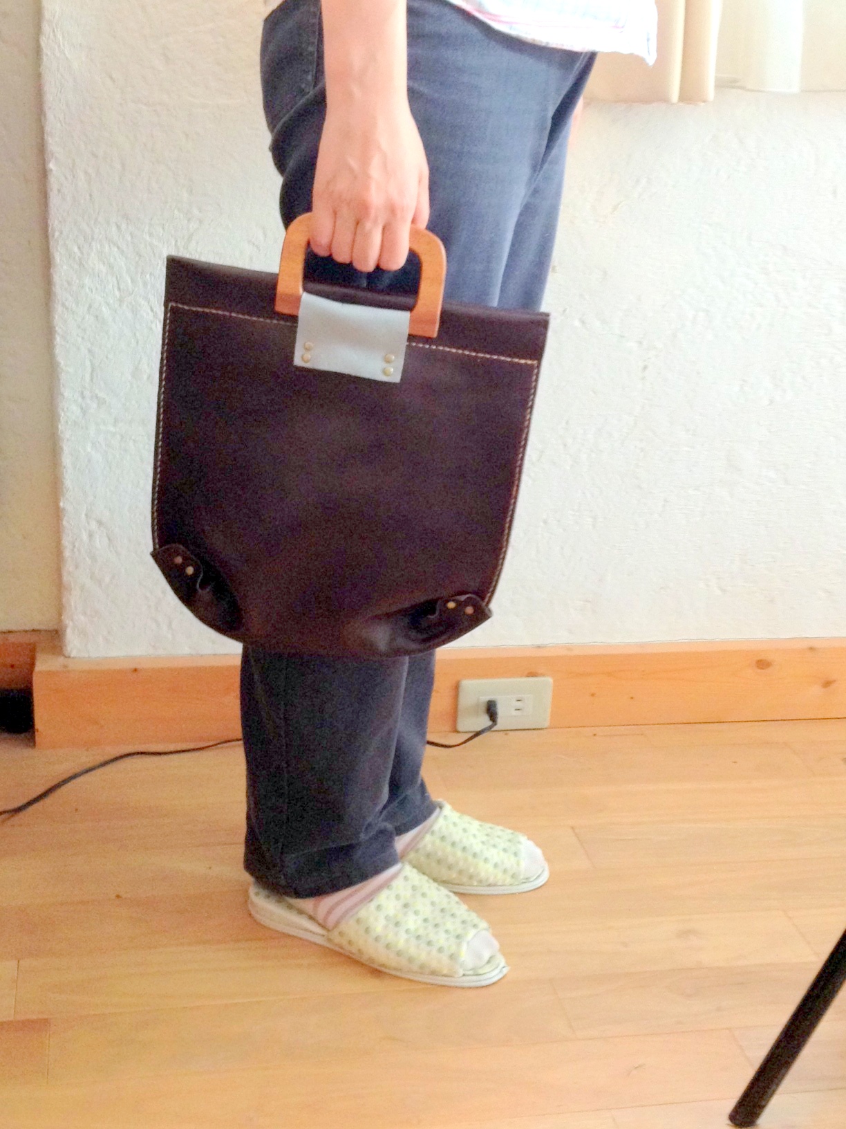 かと思いきや、持ち手の革を撮り付けたら、あらら。