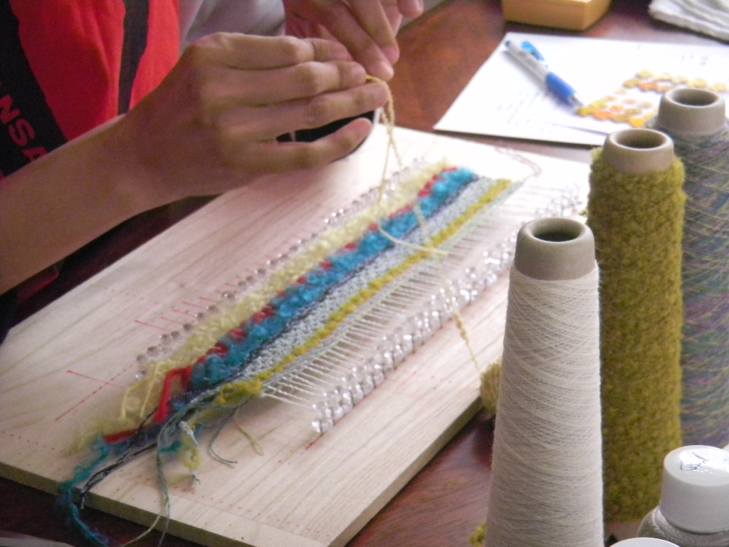 Kさんは楽しそうに糸を選んで、黙々と織りあげていってます。