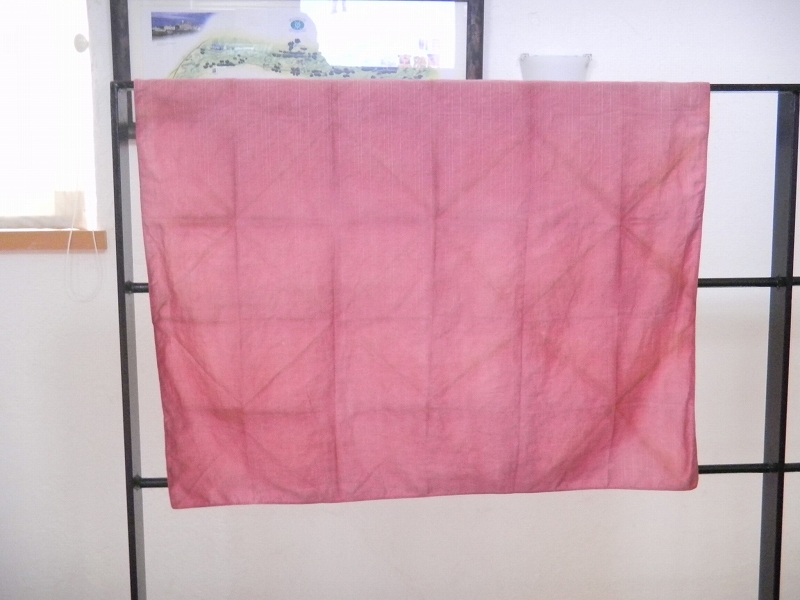 チューリップ液で布を染めて、クエン酸で媒染して、最後にチューリップで染め止めます。