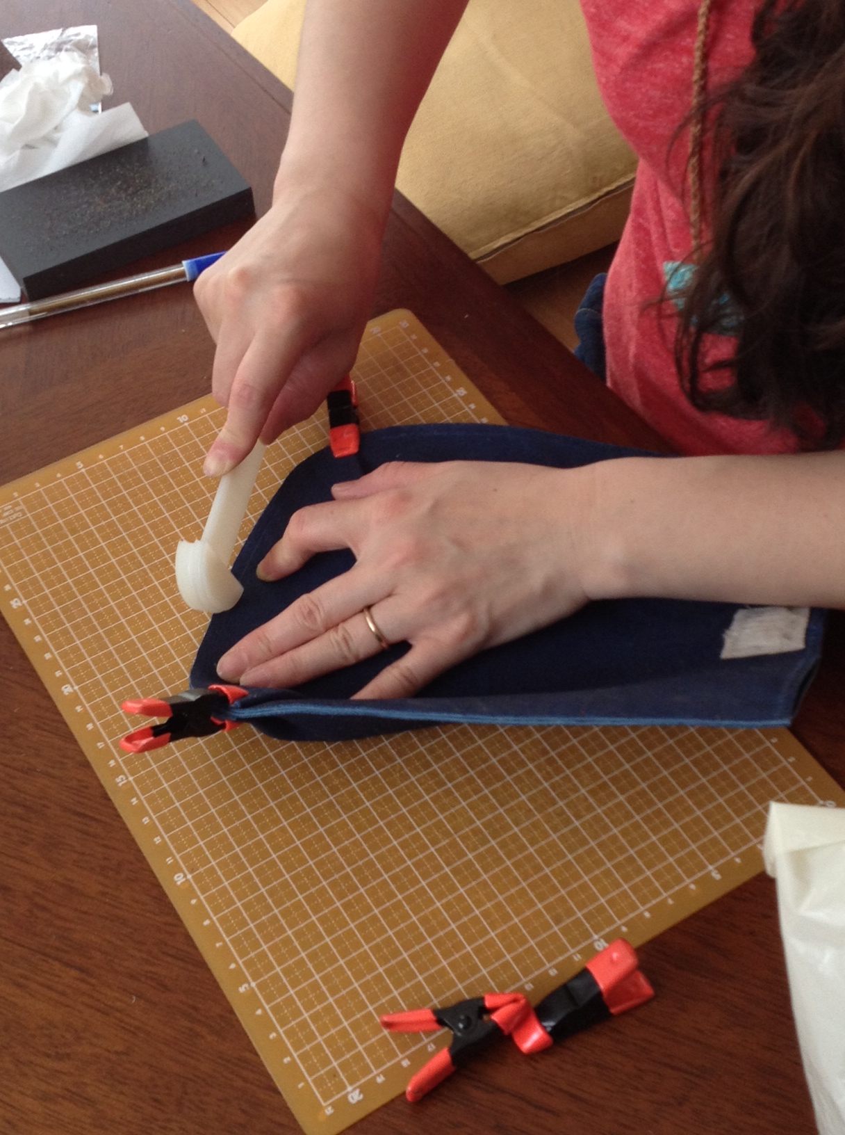 奥さまは帆布を染めて、ご主人にトートバッグに仕立ててもらう(予定)そうですよ